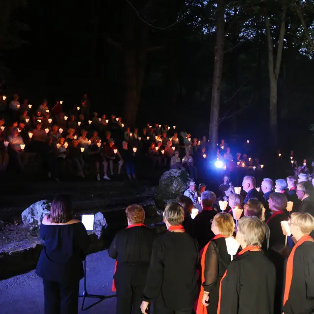The Cathédrale de Verdure is distinguished by its unique atmosphere, where the breath of creation accompanies the prayers and songs.